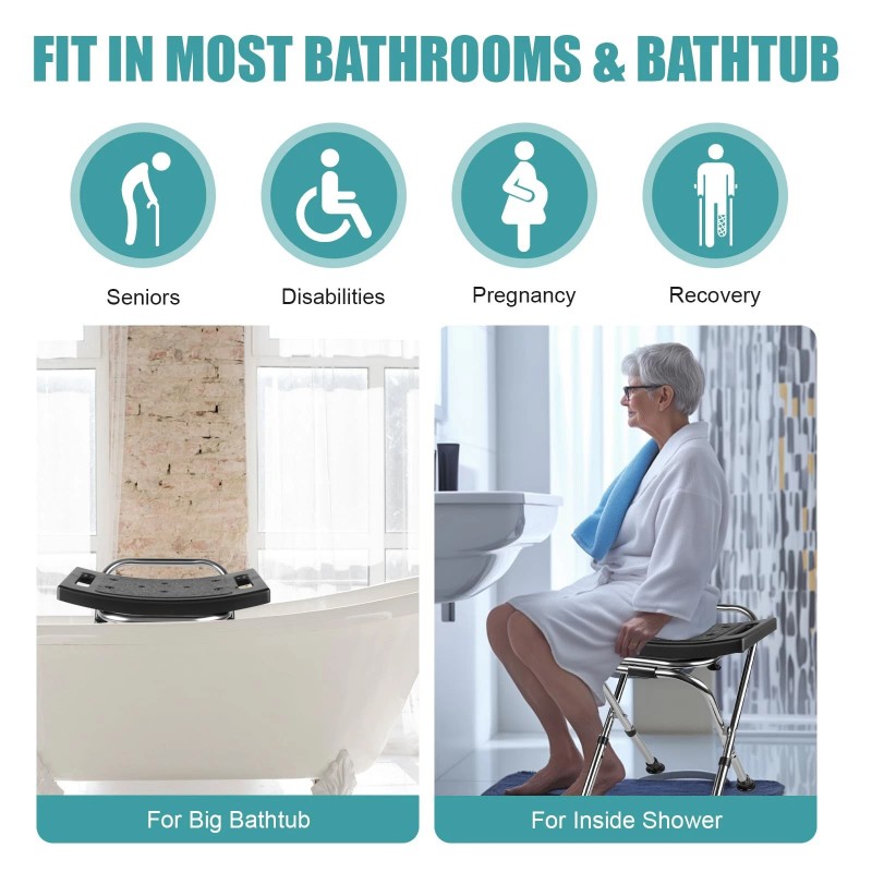 【Hassle-Free Assembly】:Easy to unfold, Enjoy the simplicity of our tool-free installation! The Shower Chair is ready to use right out of the box, allowing you to focus on comfort and safety without the frustration of complicated setup, our Bath Chair is well-suited for use in most bathtubs and bathrooms.