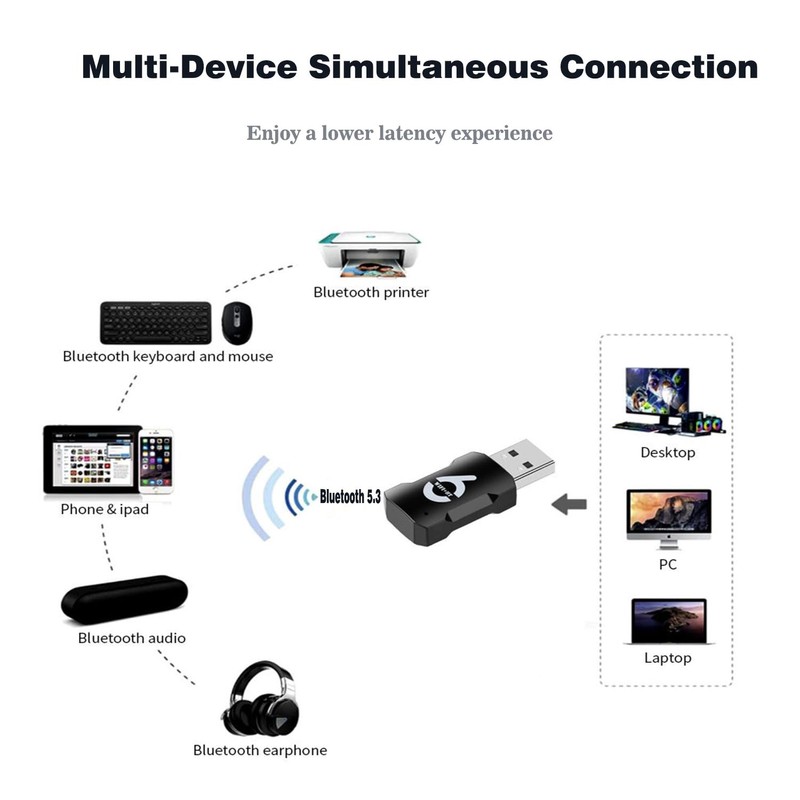 - 【Multi-Device Connection,improving the throughput of WiFi networks】WiFi USB adopts MU-MIMO+OFMDA technology, which can simultaneously transmit multiple data between multiple devices and optimize the processing of each data stream through OFMDA, thereby improving the throughput of WiFi networks.