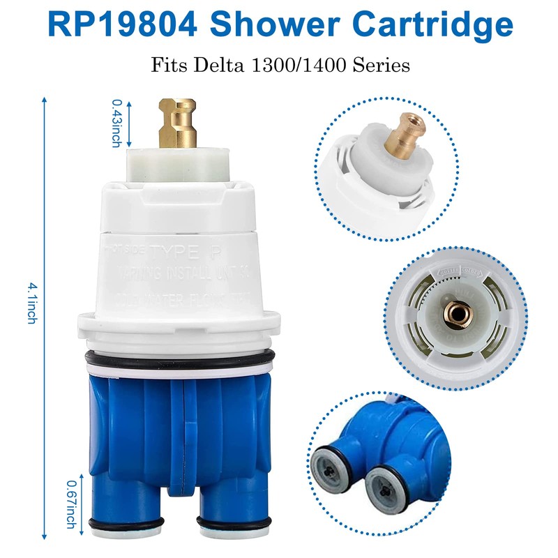 - MaterialThis delta rp19804 shower replacement cartridge is made of high quality brass and plastic. The sturdy, durable, clean and effective delta filter element replacement part will bring you a higher shower experience, which can save water, money and time