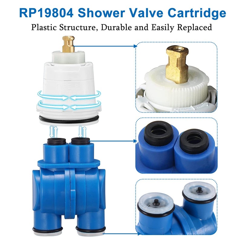 - Easy to InstallRP19804 shower valve cartridge is easy to install and repair the leaking faucet, no need too many tools and experience. You can replace the new cartridge in a short time, no need to replace the entire fixing device. Before installing the new cartridge, please clean all the contaminants around the previous ink cartridge area