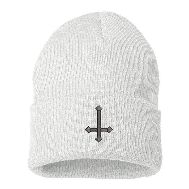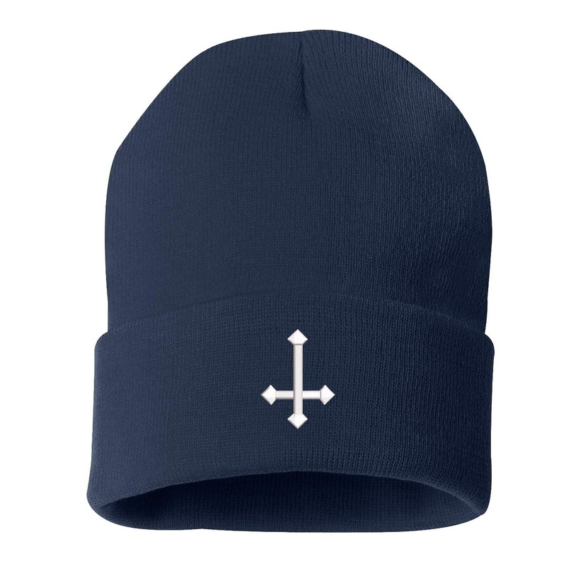 DSY Lifestyle Upside Down Cross Unisex Beanie Hat - Upside Down Cross Cuffed Beanie (Black)