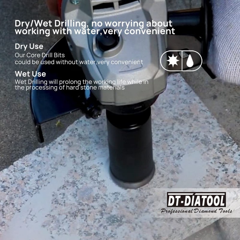 • Application: Dry or wet use for granite marble. Wet use for other nature stone/concrete. Not recommend for rebar concrete and solid concrete. Ideal for drilling the faucet mounting holes in granite/quartz/marble countertop.