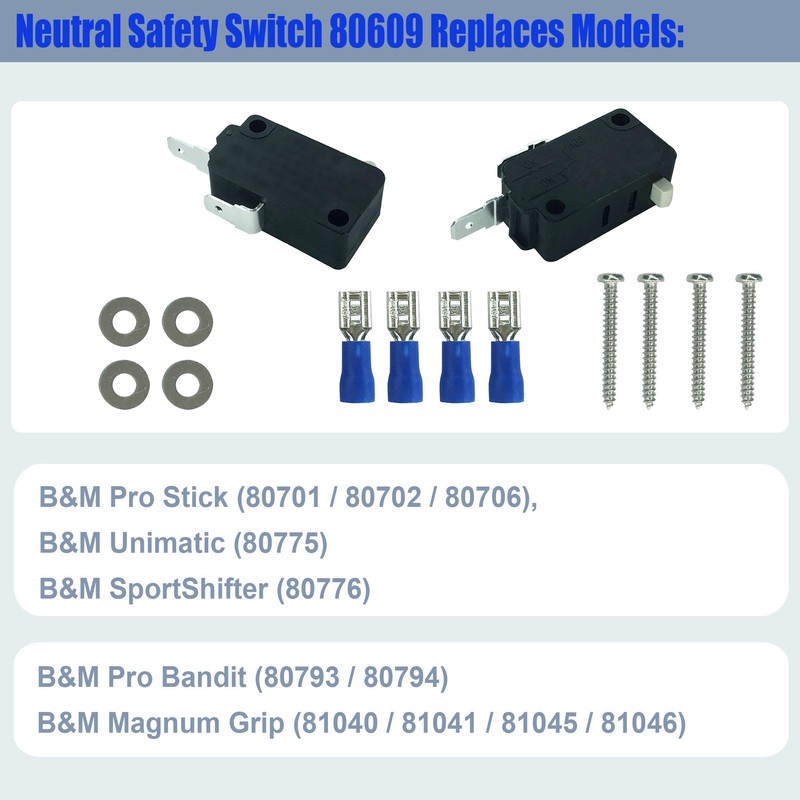 - 【PACKAGE】: 2 PCS 80609 neutral safety switches&4 pcs crimp terminals &4 pcs screws
