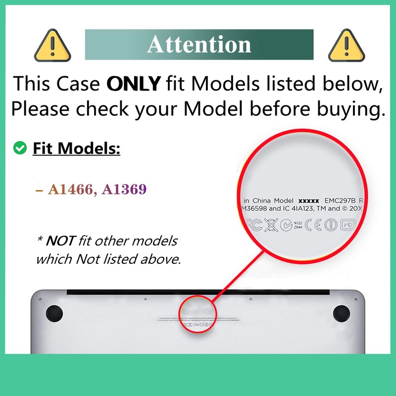 - CHECK YOUR MODEL: Please Kindly check the Model Number on the bottom of your Mac Air before purchasing, make sure it's exactly same with "A1466" or "A1369". WARNING: This Case is NOT Compatible for 2022-2024 Release MacBook Air 13.6 inch with M3 M2 Chip Model A2337 A2179 A1932 and 2018-2021 Release MacBook Air 13.3 inch with M1 Chip Model A2337 A2179 A1932