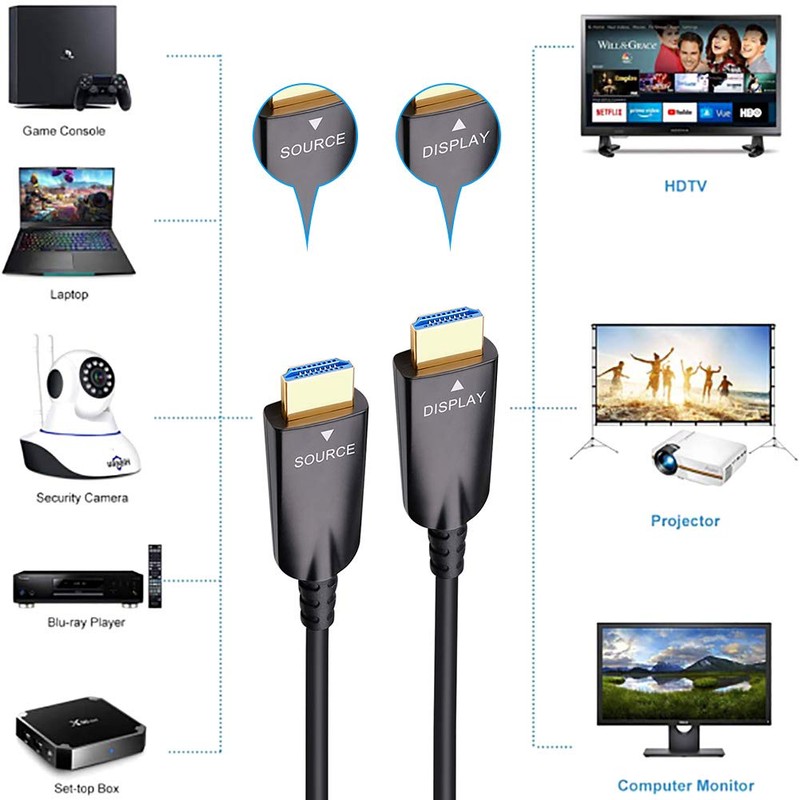- HDMI fiber optic cable is an ideal solution running high speed HD video over long distance when your 75ft regular Copper HDMI port cords have Electromagnetic Interference Issue.
