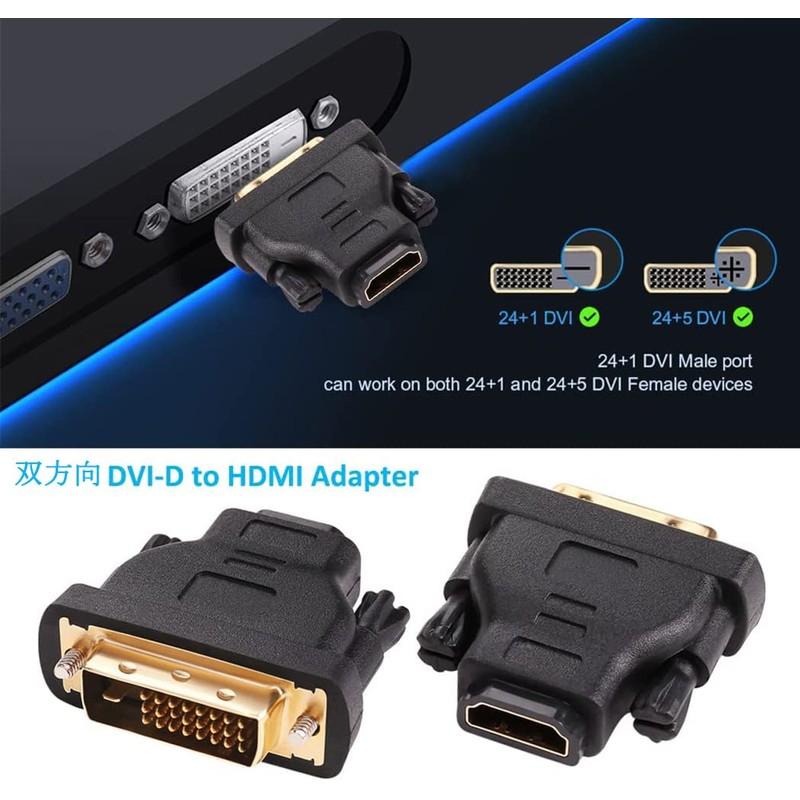 - Two-way HDMI Female to DVI-D 24pin Male Adapter It can be used for both HDMI input - DVI output, DVI output - HDMI input