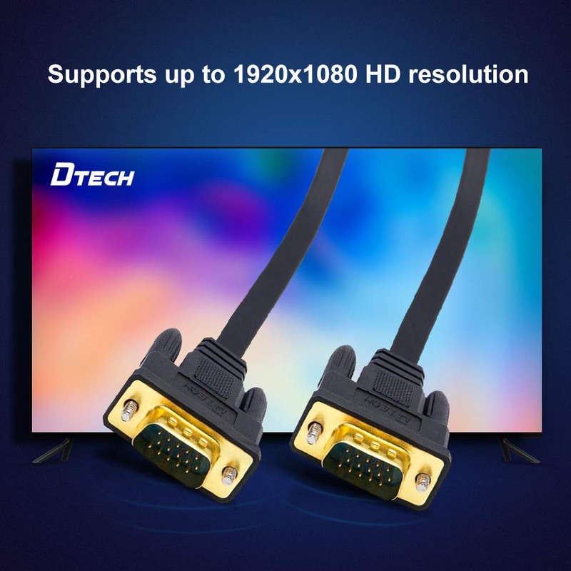 DTECH VGA flat cable provides superior performance compared to round vga monitor cables. It features high-quality gold-plated connectors and 100% bare copper conductors, shielded by foil and copper braid, with EMI / RFI greatly reduced, no ghosting and no degradation.