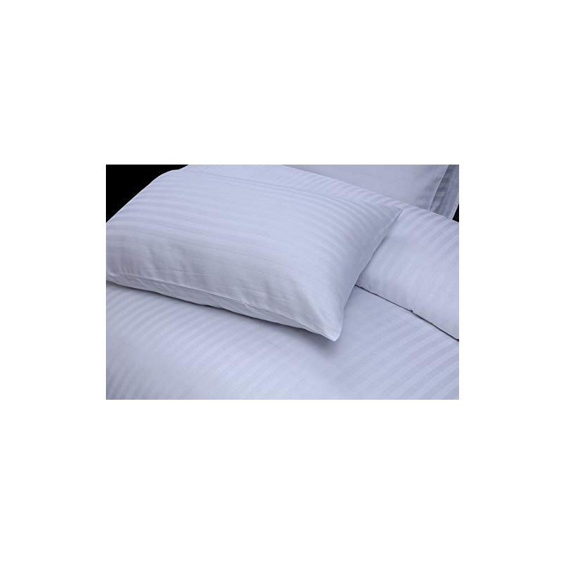 DTEX HOMES 2 Pillowcases Satin Stripes 100% Egyptian Cotton Envelope Closure Ultra Soft and Premium Quality Pillow Covers 50 x 90 cm (King Housewife-White)