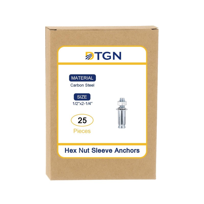 DTGN 1/2" x 2-1/4" Hex Nut Sleeve Anchors - 25Pack - Good for Concrete Dry Br...