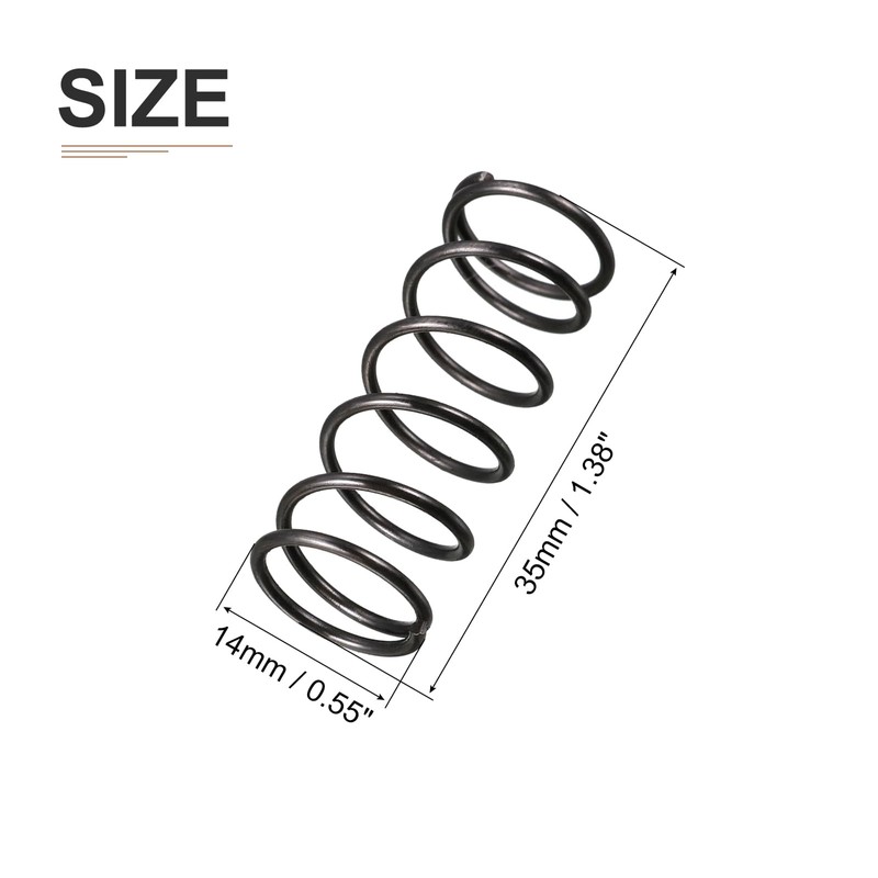 - [Compression Spring]: The package comes with 10pcs of black compression spring in 1.2mm/ 0.05" Wire Dia, 14mm x 35mm/ 0.55" x 1.38" Outer Dia and Free Length.