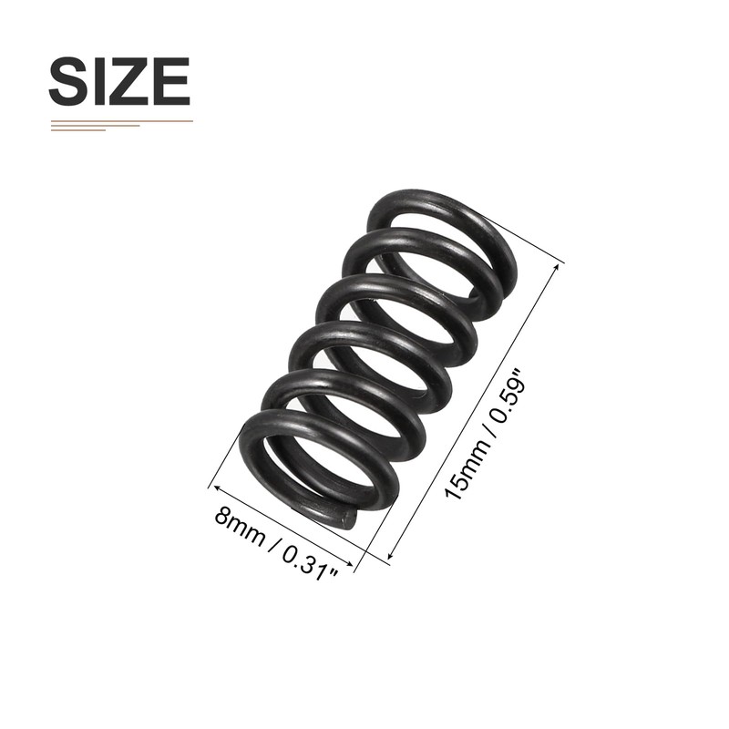 - [Compression Spring]: The package comes with 10pcs of black compression spring in 1.2mm/ 0.05" Wire Dia, 8mm x 15mm/ 0.31" x 0.59" Outer Dia and Free Length.
