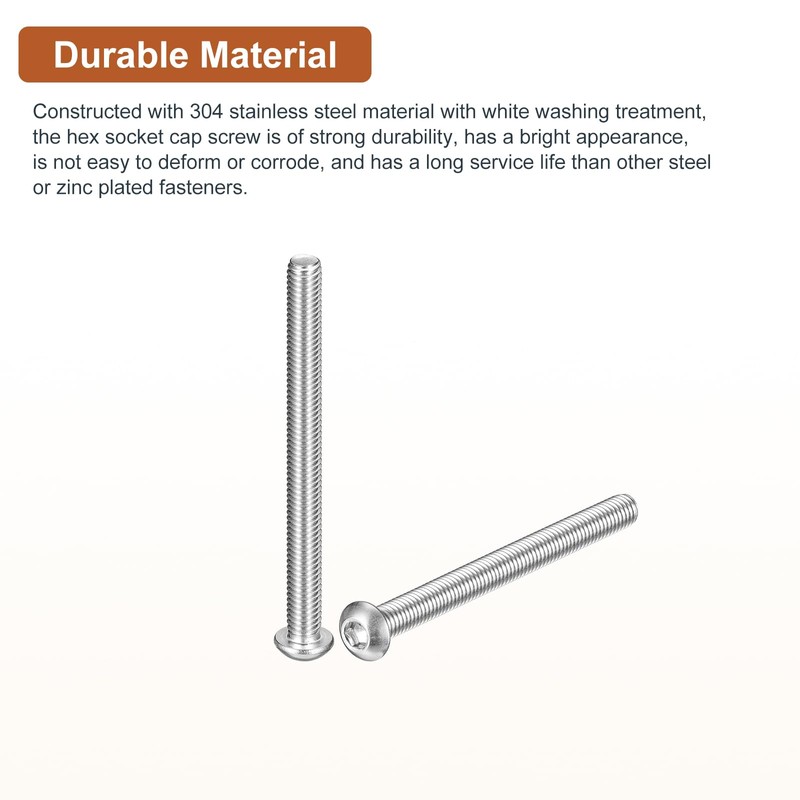 - [Sturdy and Durable]: Made of 304 stainless steel material, with white washing processing, this hex drive cap screw is durable, bright appearance, not easy to deformation or corrode, longer life than other steel or galvanized fasteners