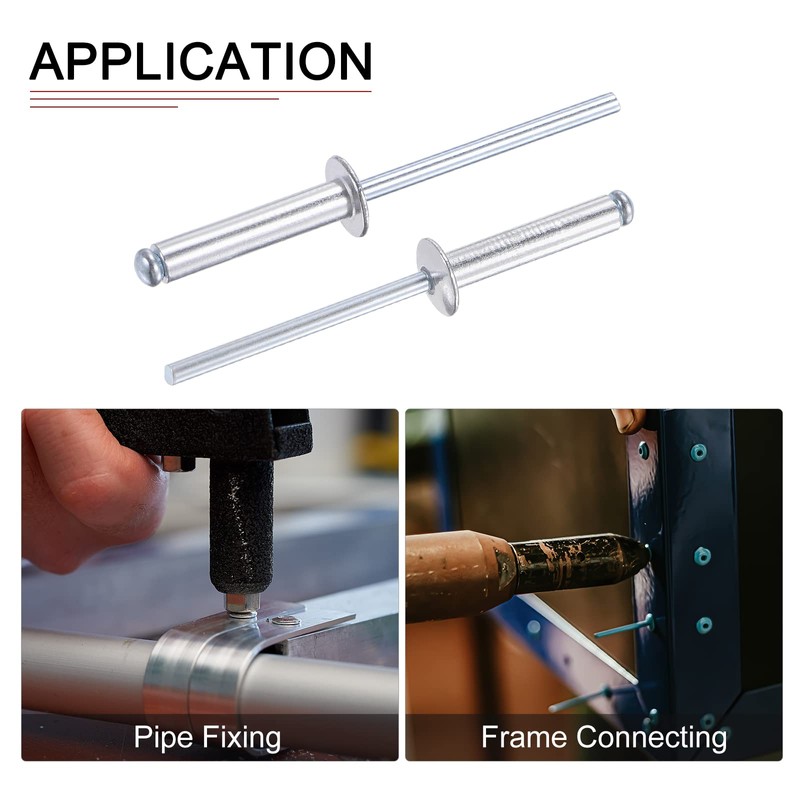 - [Good Choice]: Blind rivets are great used in applications where there is no access to the rear(blind side) of the joint. Commonly used in machinery, furniture, RV, ship, construction and other scenes to make high-strength joining in a range of materials. Typically, the process is used for joining plastic or sheet metal.