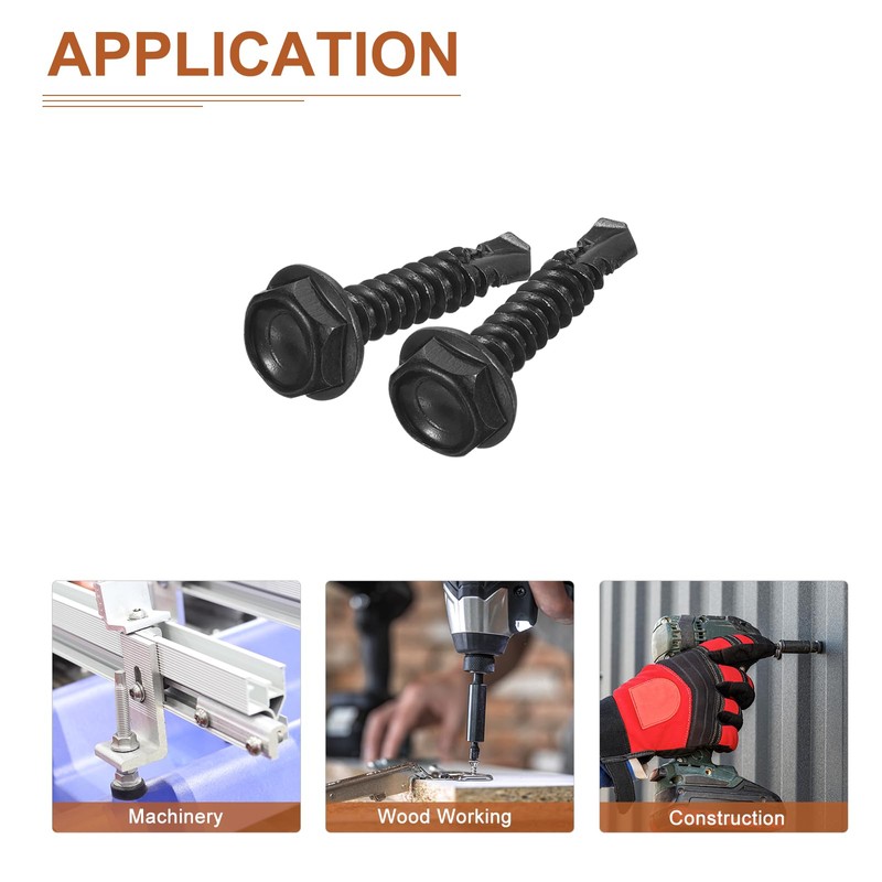 Feature - The metal sheet screws are designed with an external hex drive style with washer, preventing slippage and ensuring a strong hold. The self-drilling design allows faster screwing into hardwood, easy to drill into, such as wood, sheet metal steel, aluminum, plastic, or other materials, reducing cracking problems.