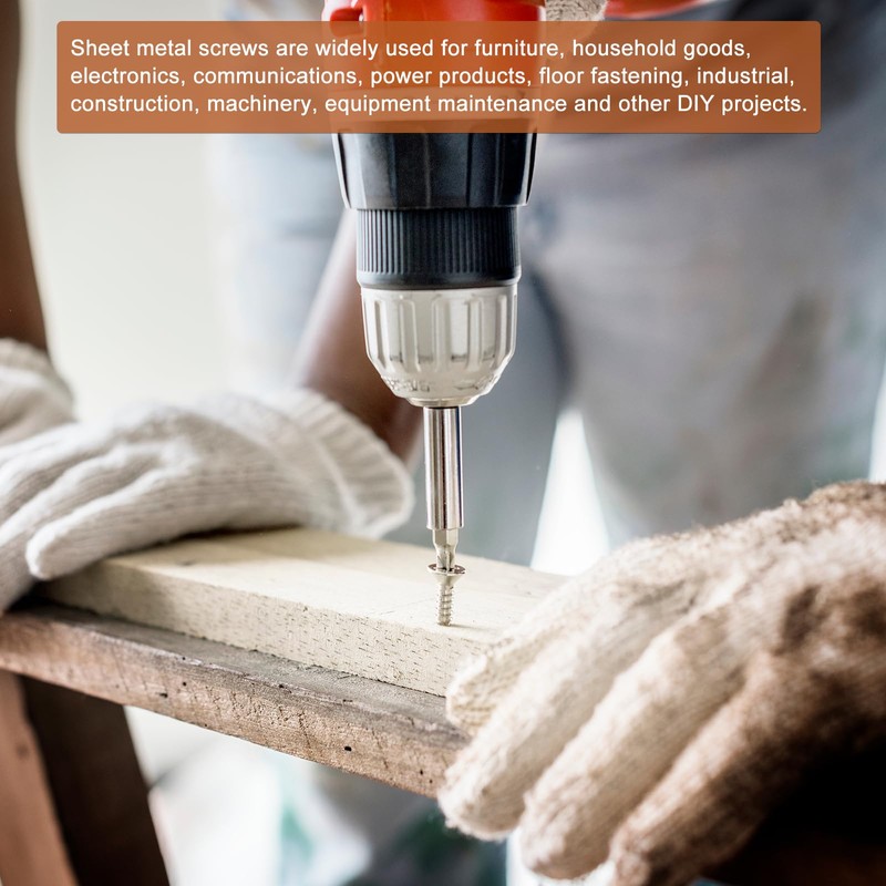 - [Good Choice]: Sheet metal screws are widely used for furniture, household goods, electronics, communications, power products, floor fastening, industrial, construction, machinery, equipment maintenance and other DIY projects.