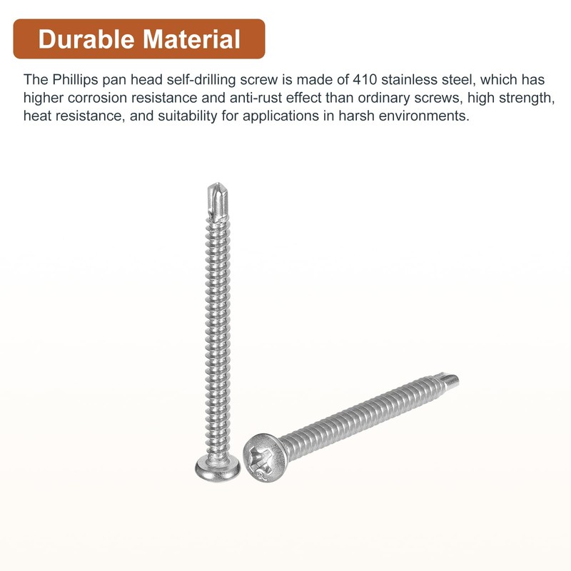 - [Sturdy & Durable]: The Phillips pan head self-drilling screw is made of 410 stainless steel, which has higher corrosion resistance and anti-rust effect than ordinary screws, high strength, heat resistance, and suitability for applications in harsh environments.