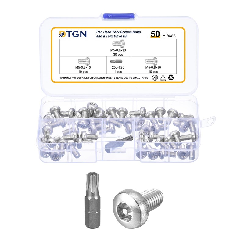 Package Content: 50Pack x Pan Head Torx Screws Security Screws Bolts with a Torx Driver Bit