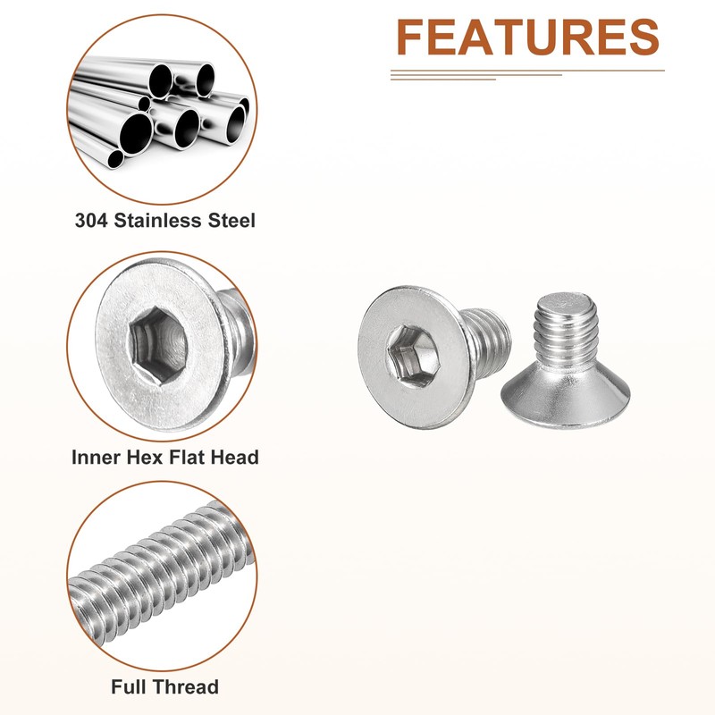 - [Feature]: The flat head machine screws are very strong and are great for both indoor and outdoor use. This stainless is superior to regular steel and provides excellent rust resistance.