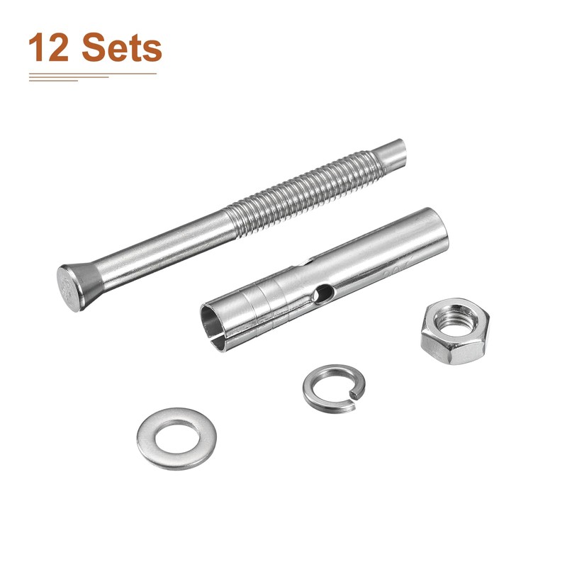 - Expansion Bolts - The package comes with 12pcs of silver 304 stainless steel expansion bolts in nut size M6 x 60mm, thread diameter: 6mm/0.24inch, total length: 60mm /2.36inch, nut size: 9.8 x 4.8mm/0.39 x 0.19inch(across flats D*T), pre-drilled hole diameter: 6.1mm / 0.24inch, installation torque: 5Ft/Lbs, gasket size: 6.5 x 11.8 x 1.4mm / 0.26 x 0.46 x 0.06inch (ID*OD*T).