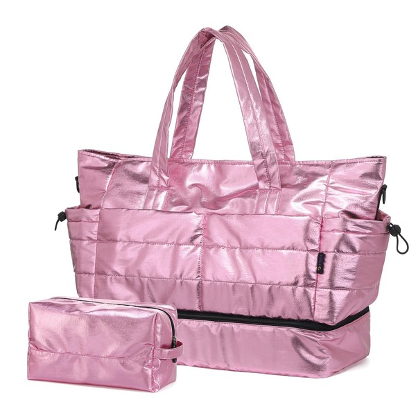 DTGN Pink 50L Travel Duffel Bag for Women, Weekender & Gym Bag with Shoe Compartment & Toiletry Bag, Water-Resistant Polyester, 18.9 x 8.5 x 15.55 inches