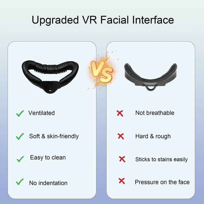 - 【Air Circulation Vents Design】Based on the original foam interface, our face interface frame has added ventilation and exhaust holes at the top and bottom. This not only allows heat to escape, but also protects the device and prevents the lenses from fogging up. Providing you with a comfortable gaming visual experience