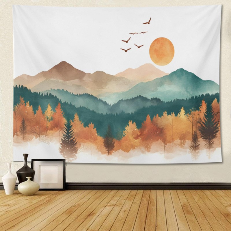 - Multi use: This watercolor landscape tapestry is great for wall hangings, Beach throws, picnic blankets, porch hangings, table cloths, bed Spreads, sofa covers, dorm decorations, ceiling decor, window curtain