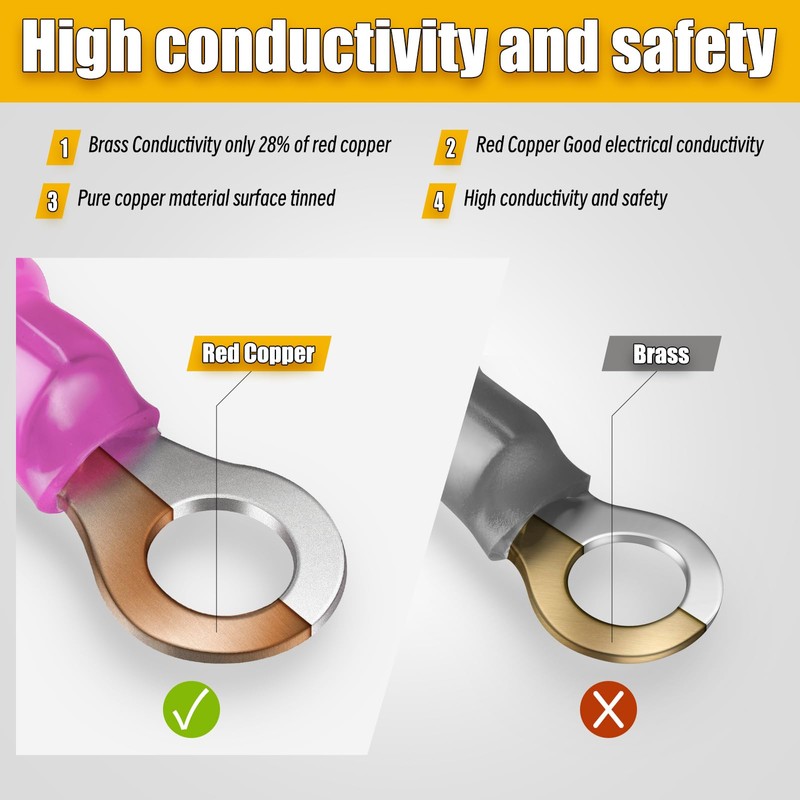 - Surface treatment :Matte Tin-Plated Red Copper Thick,Effectively prevent copper layer rust and then cause bad contact,anti oxidation prevent electrical sparks. Highly conductive. Brazed-seam ensures the wire does not get damaged when crimped.
