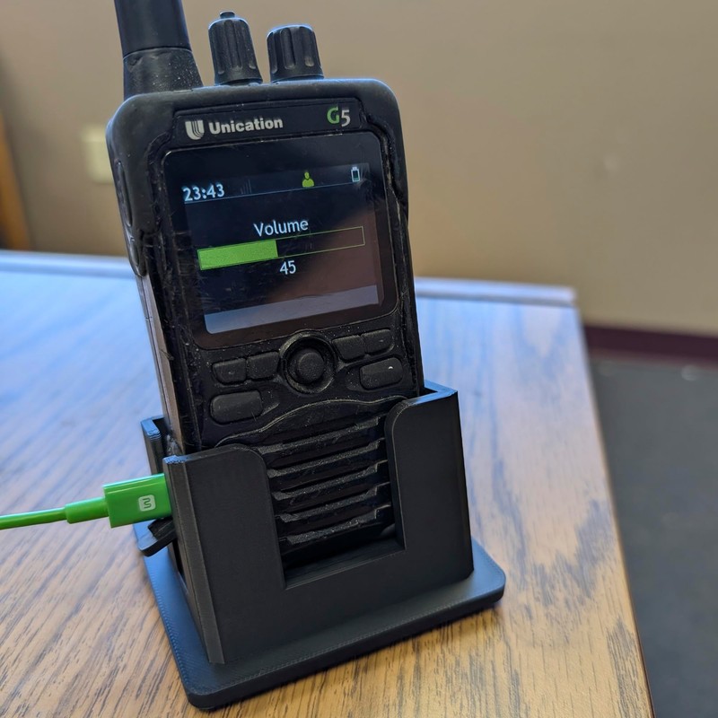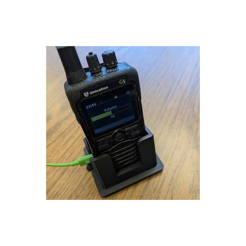 This versatile stand is custom-designed for Unication G2, G3, G4, and G5 radio pagers providing a stable and secure resting spot for them. Whether you need a reliable holder on your desk, table or nightstand, this stand ensures your pager is easily accessible and securely held in place. With a slight backward tilt, it enhances display visibility while maintaining full functionality. The stand is crafted to perfectly fit these models, allowing for smooth insertion and removal without friction or hassle. There is a cutout on the side to allow for are charging cable to be inserted into the pager while it is resting in the stand. The bottom of the stand has installed slip resistant rubber dots. Built from durable materials, this stand is designed to withstand daily use while keeping your pager secure and ready at all times.