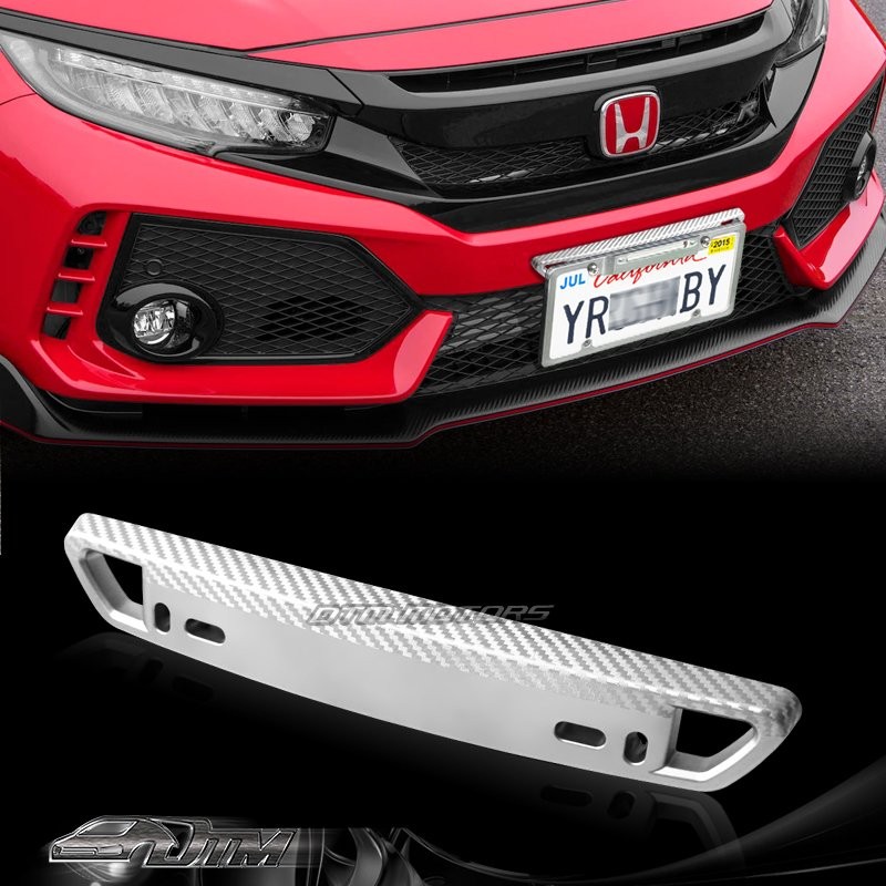 DTM 1PCS JDM Silver Carbon Look Bumper Front License Plate Holder Relocate Bracket