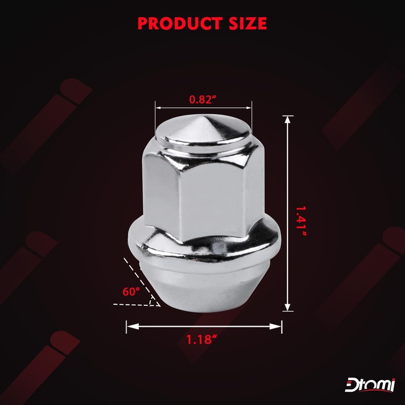 - 【Specifications 】- Lug Nuts M14*1.5, 13/16" 21mm Hex, 36mm Length, 60 degree cone/conical seat, overall tall 1.41" (36mm), width 1.18"(30mm), 21mm(13/16") hex.