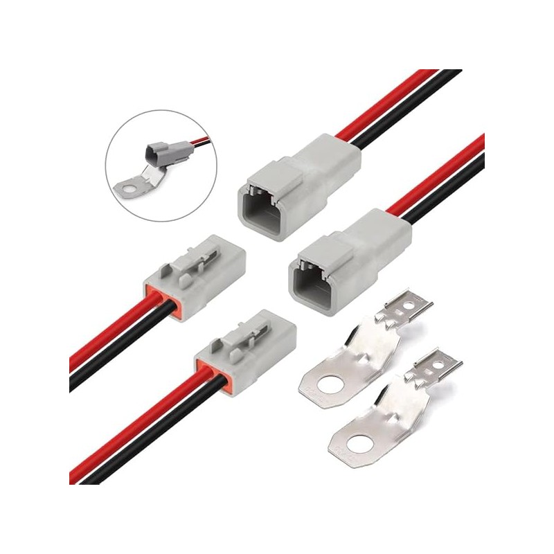 DTP 2 Pin Connector with 12 AWG Cable Wire,2 Way DT Automotive Waterproof Electrical Connector Male Female Plug Wiring Harness,for Car,Truck,Boats,LED Work Light,DTP06-2S DTP04-2P(2 Pairs)
