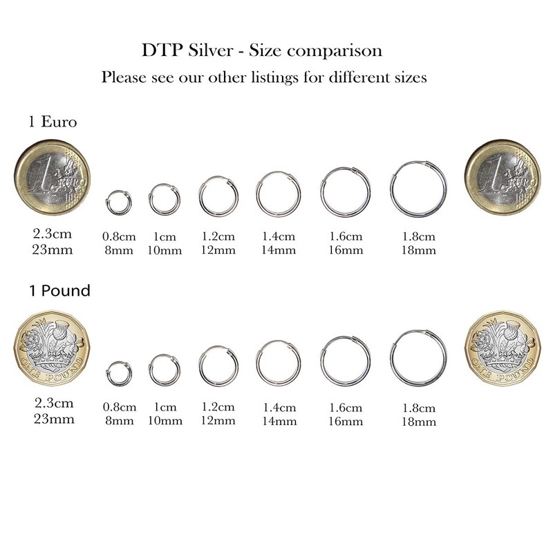 - Thickness 1.8 mm - diameter 10 and 12 mm - main image is not life size - caution, 10.12 mm is small and can be fumbly. Easier if you insert from the back - 10 and 12 mm: helix/tragus/cartilage
