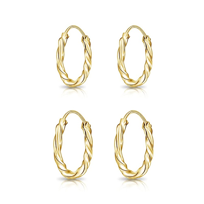 DTPsilver - 2 pairs of earrings - small round hoop earrings twisted - 925 sterling silver, yellow gold plated or rose gold plated - helix/tragus/cartilage - thickness 1.8 mm - diameter 10 and 12 mm,