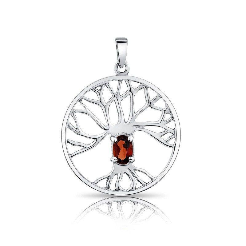 DTPsilver® 925 Sterling Silver Necklace – Celtic Tree of Life Pendant with Natural Gemstones – With or without Chain – Width: 1.2 mm – Adjustable Length: 40 to 45 cm, Sterling Silver Stone, Garnet