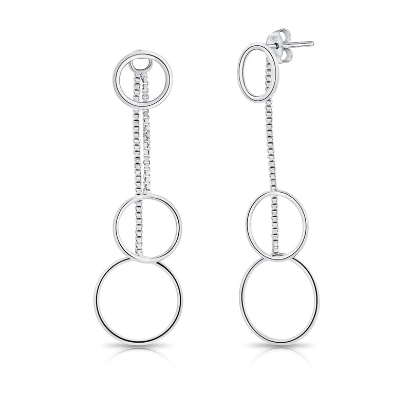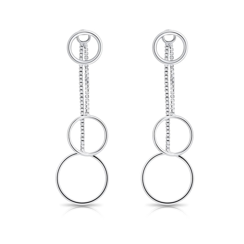 DTPSilver - 925 Sterling Silver Rodium Plated Dangling Triple Hoops Studs Earrings