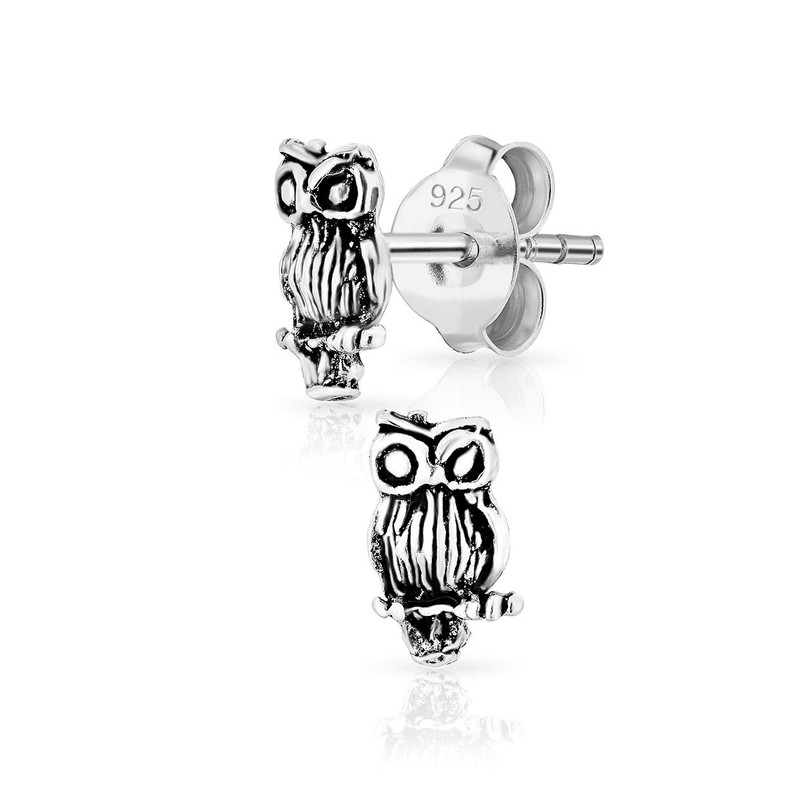 DTPsilver - Women's Earrings 925 Sterling Silver Owl Stud Earrings, Sterling Silver, No Gemstone