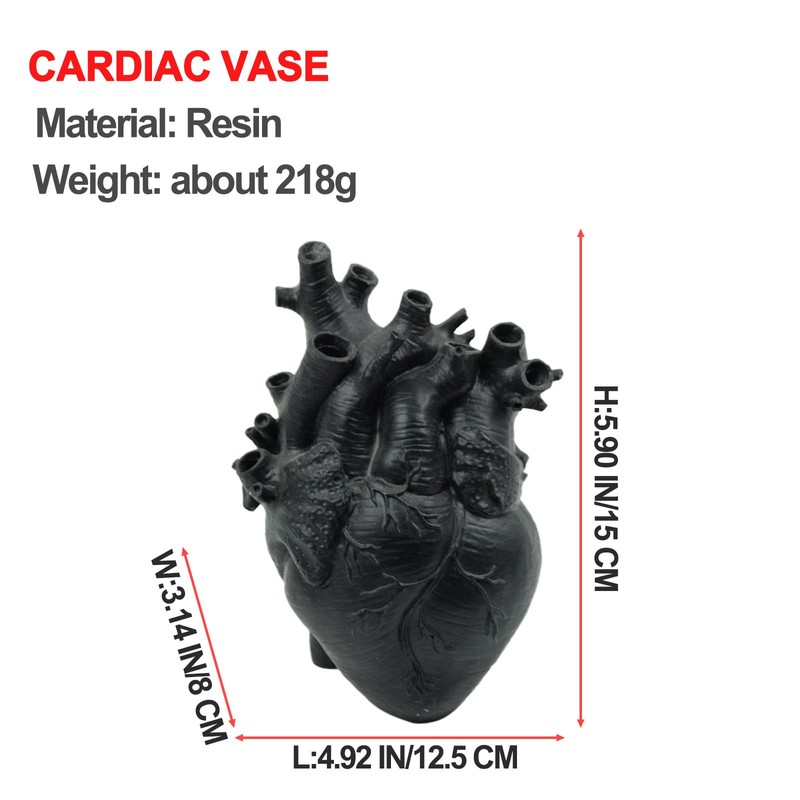 DTSFHTDAL Resin Heart Vase, Anatomical Hearts for Flowers Human Heart Organ Shape Vases Unique Flower Vase Gothic Vases Desktop Home Decoration Decoration (Black)
