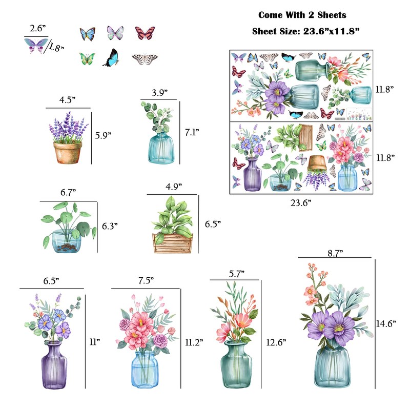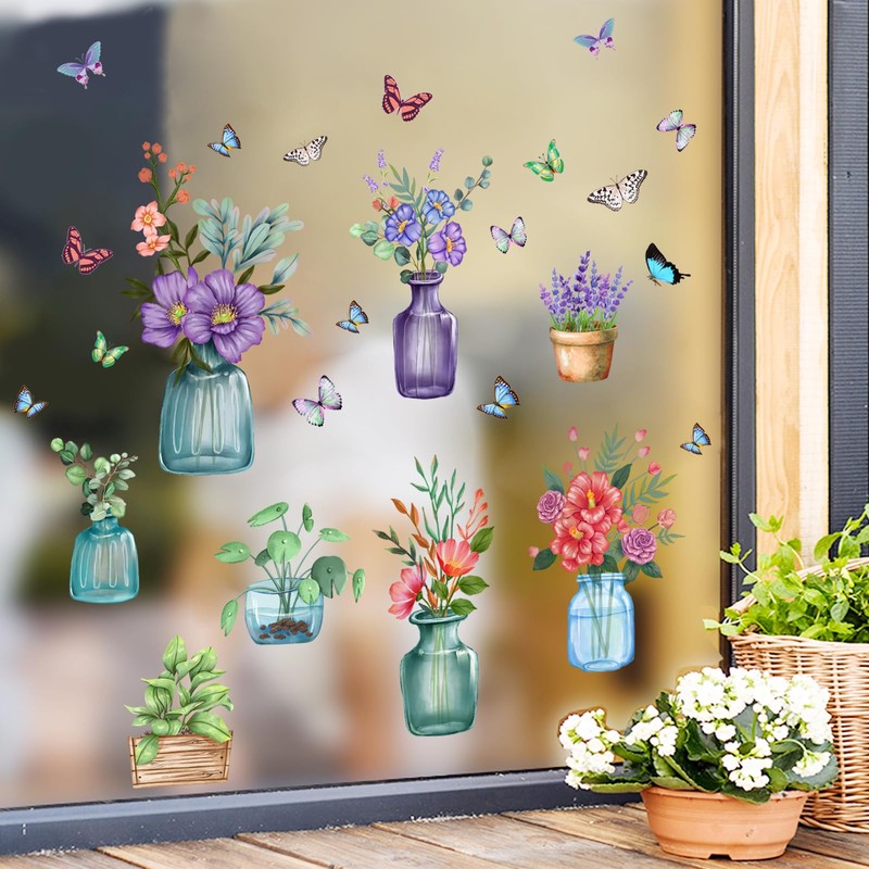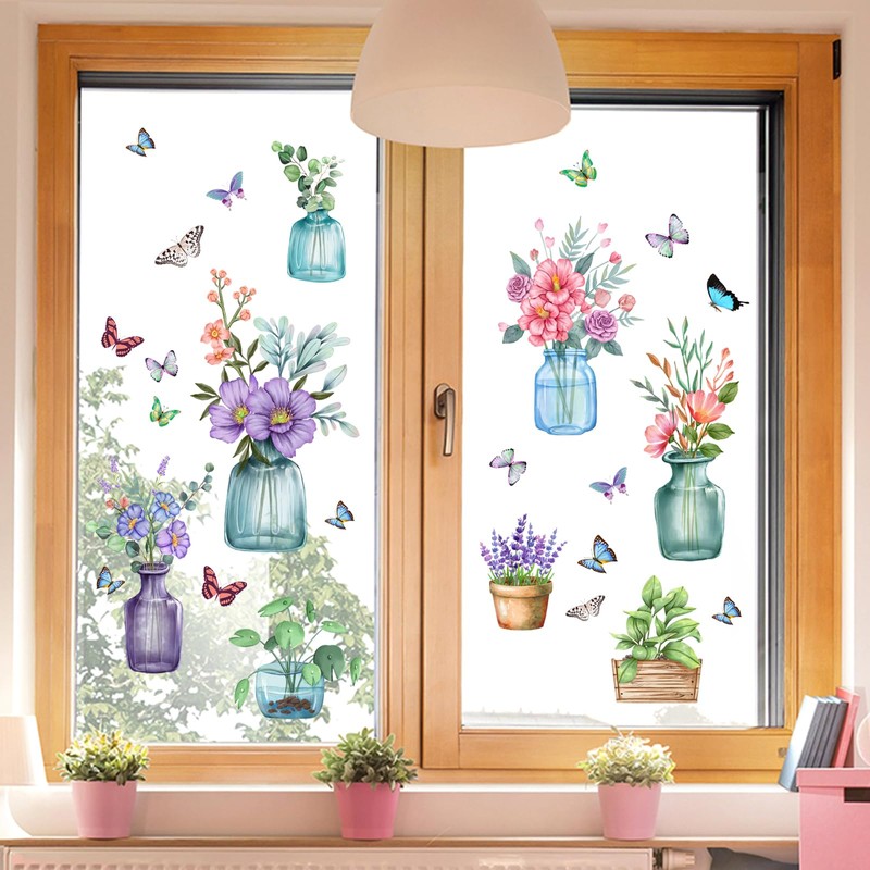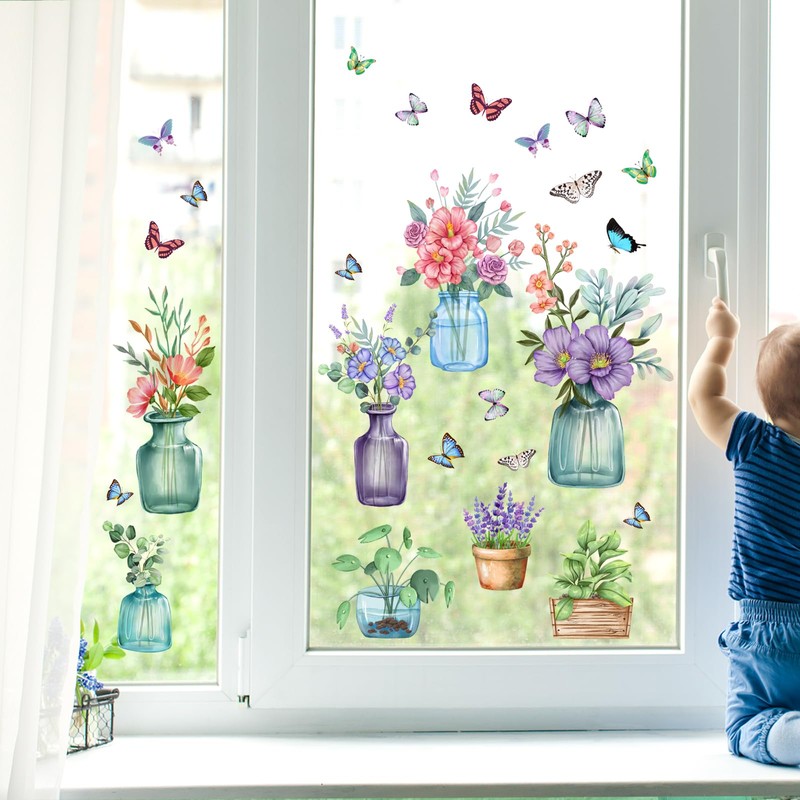 - PRODUCT SIZE: You will get 2 sheet 60*30 cm/23.6*11.8 in window clings, 38pcs window stickers are all in different designs and colors, printed with flowers, butterflies, vases and green plants images, they are well match the season atmosphere