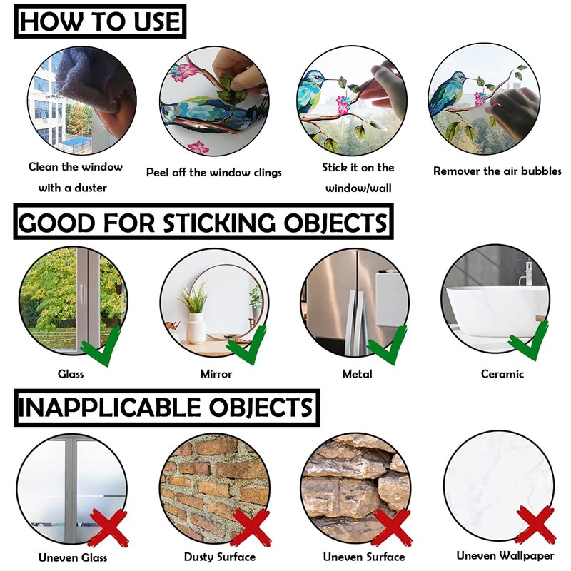 - EASY TO STICK: Double-sided printing with high quality. They can look great from both inside and outdoors! Window clings are easy to stick to any glass window, wall, door or smooth surface with no glue or adhesives