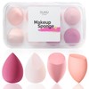 - 8PCS MAKEUP SPONGES: This beauty sponge set comes with 4 different shapes of beauty blender sponges, including 2 slanted olive shapes, 1 teardrop shape and 1 cut teardrop shape. 8PCS in total and a storage box. Multi-color make up sponges for all kinds of cosmetics.
