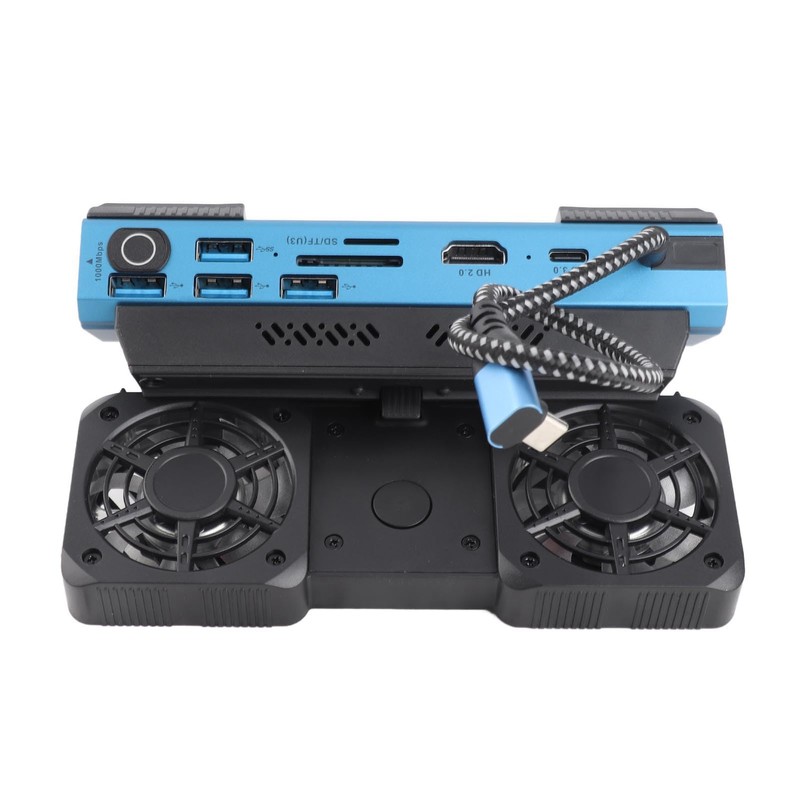 Dual Cooling Fans 9-in-1 Docking Station for Steam Deck with 4K@60Hz, USB C PD 100W, Gigabit Ethernet, RGB Light Effect, Three Adjustable Fan Speeds, Expand Ports