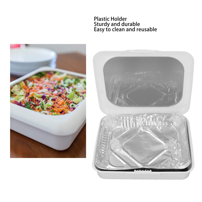 - HIGH INSULATION: Foil tray holder set, better insulation effect, can keep food freshness and taste for a long time. Can store salads, fruits, fried chicken, etc.