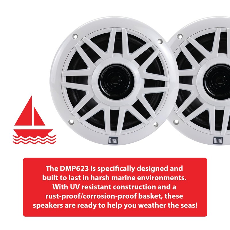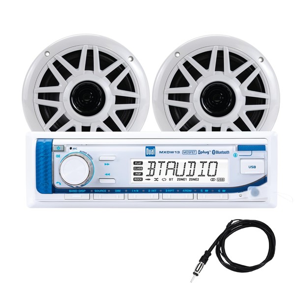 Dual Electronics MXD140 Marine Radio | AM/FM Stereo Receiver | 8-Character LCD | Single DIN | Boat Radio with Built-in Bluetooth | USB Port with 2.1 A Charging | White