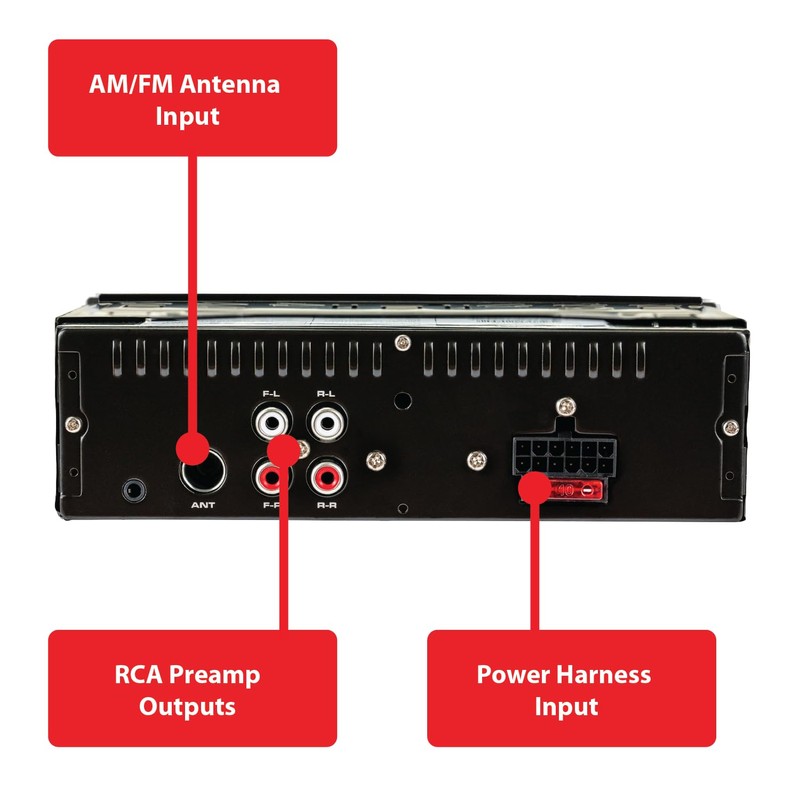 - 200 Watts (50 Watts x 4) MOSFET Built-in Bluetooth for hands free calling, audio streaming and player control Built-in Microphone Digital Media Receiver - does not play CDs Front panel USB input 8 Character LCD FLAC & MP3 Playback 2 Pair of RCA preamp outputs (Front/Rear) 2 Band Tone Control (Bass/Treble) 4 Preset EQ curves (Classic, Rock, Pop & Flat) LCD Dimmer Voice activation button AM/FM Receiver with 30 Station presets (18FM/12AM) Built for Marine use