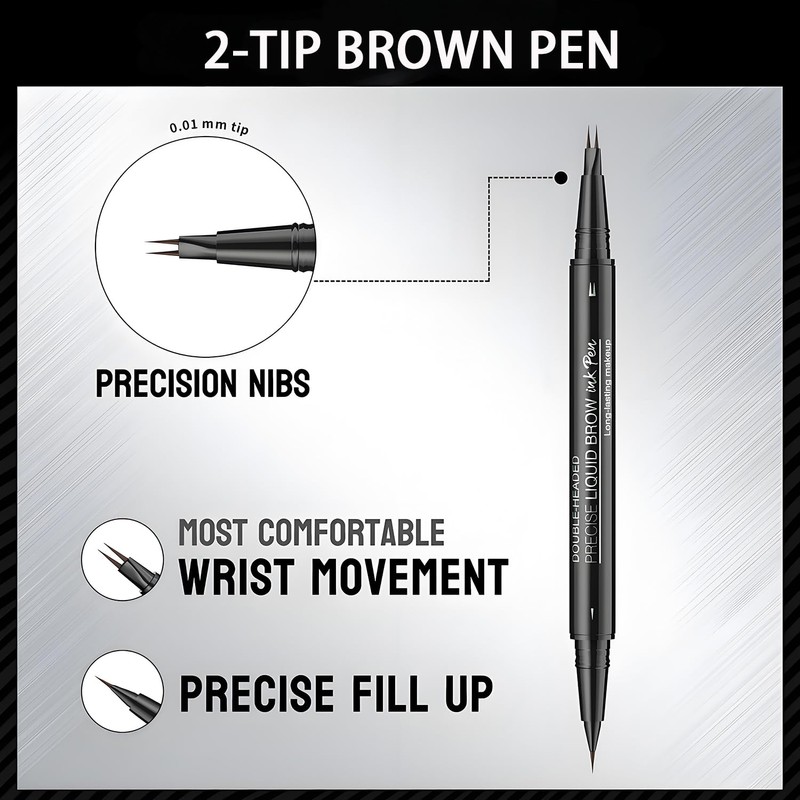 1️⃣ Start by using the precision tip to fill in any sparse areas of your brows with hair-like strokes.