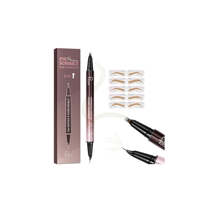 - 2-in-1 Eyebrow and Eyeliner Pencil: This dual-ended eyebrow pencil has 4 fork tips on one end, which can easily outline a natural 3D eyebrow, and the other end has a curved eyeliner pencil, which can perfectly fit the eye shape and draw a smooth, delicate eyeliner;