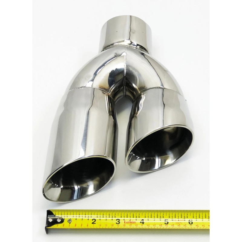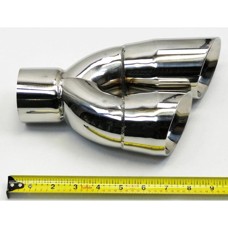 Dual Exhaust Tip 2.25" Inlet 3.00" Outlet 9.50" long Dual Double Wall Slant Angle Pol