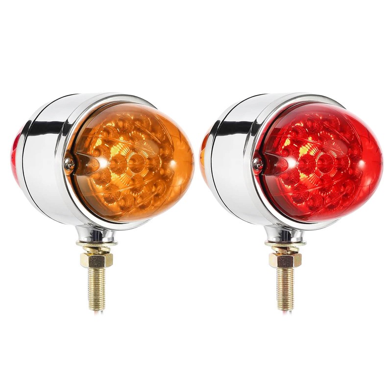 - Package Includes. 2pcs 34 LEDs Reflector Watermelon Amber Red Lens Double-Face Pedestal Lights with a heavy-duty chrome die-cast housing and single-stud mounting. The plastic bezel adds a sleek look to the 3.5" round amber/red LED turn signal light. Each light features 34 high-power LEDs with a faceted reflector design, ensuring enhanced brightness and a modern appearance.