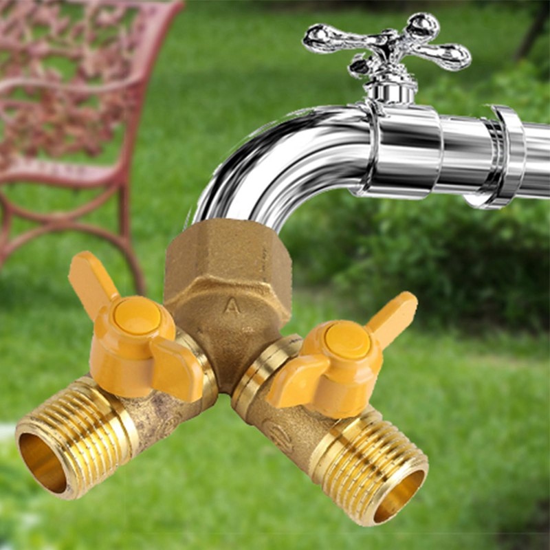 Dual Faucet Hose Adapter g1/2 Specification Dual Valve y Shaped Splitter Brass Bidirectional Faucet Connector Suitable for Gardens Irrigation