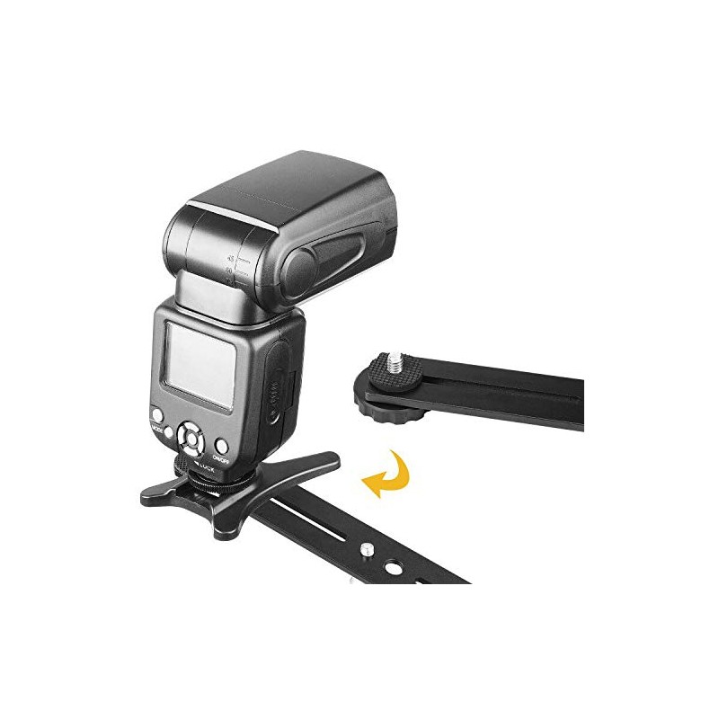 - 【Adjustable Flash extension bar】 Adjustable range from 4-18cm. Allowing to attach two devices at the same time. Please check the max adjustable range for your camera or accessories before order.
